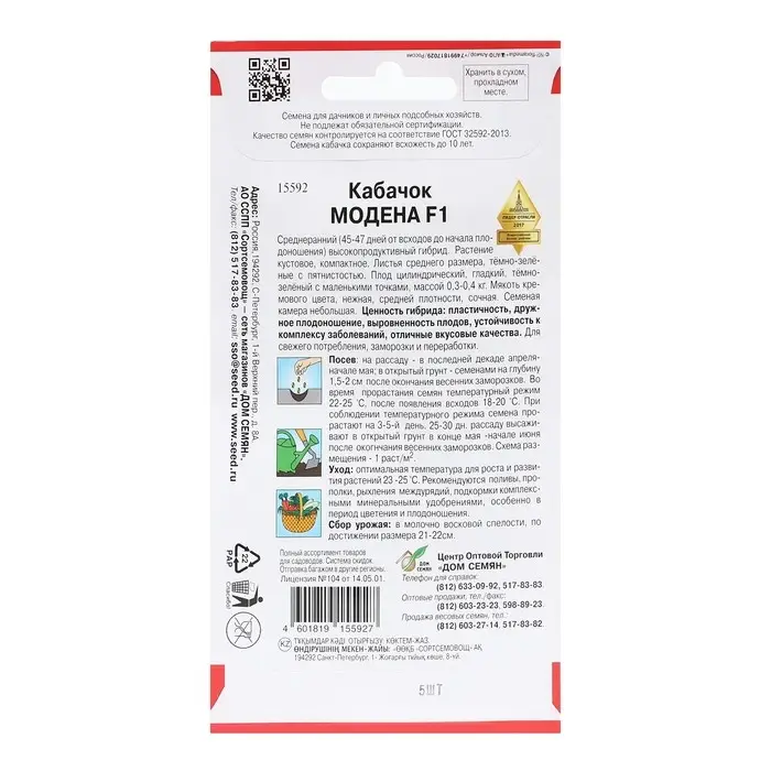 Семена Кабачок "Модена", F1, 5 шт