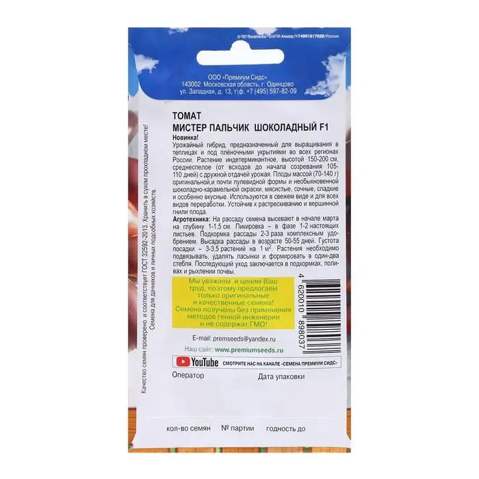 Семена Томат"Мистер пальчик шоколадный", F1, 0,05 г