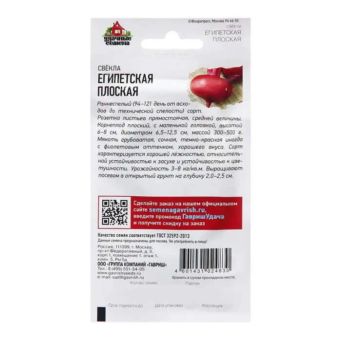 Семена Свекла "Египетская плоская", ц/п, 3,0 г