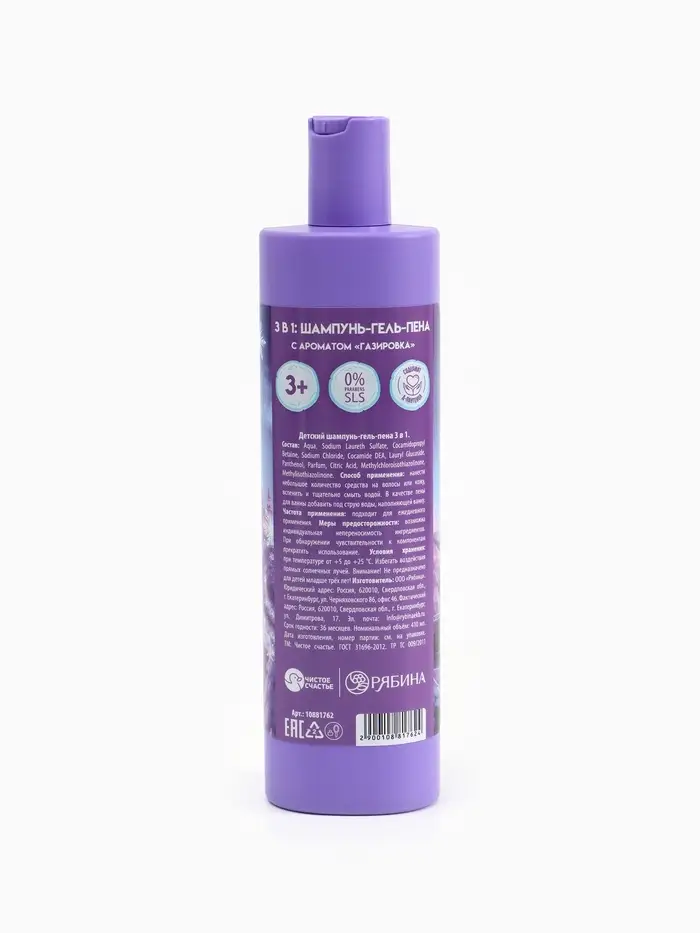 Детский шампунь-гель-пена 3в1, аромат газировка, 410 мл, Холодное сердце