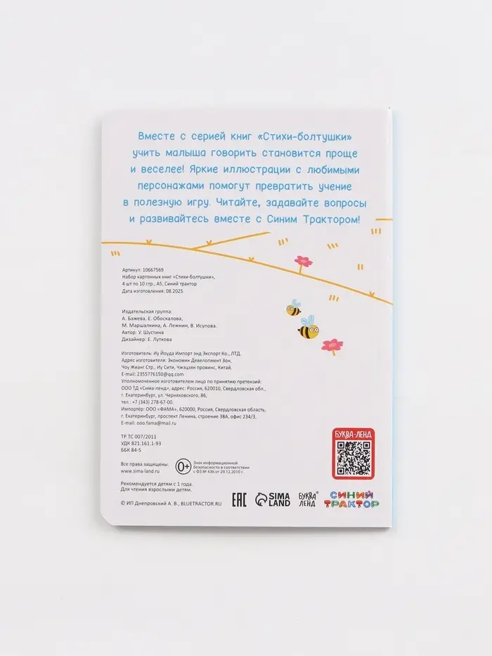 Познакомьте малыша с весёлыми стишками и добрыми героями ! Этот набор создан для того, чтобы читать вслух, смеяться, повторять строчки и вместе мечтать о приключениях синего трактора и его друзей. Картонные страницы выдержат даже самые активные детские ручки — от первых дней знакомства с книгой до уверенного листания «сам».