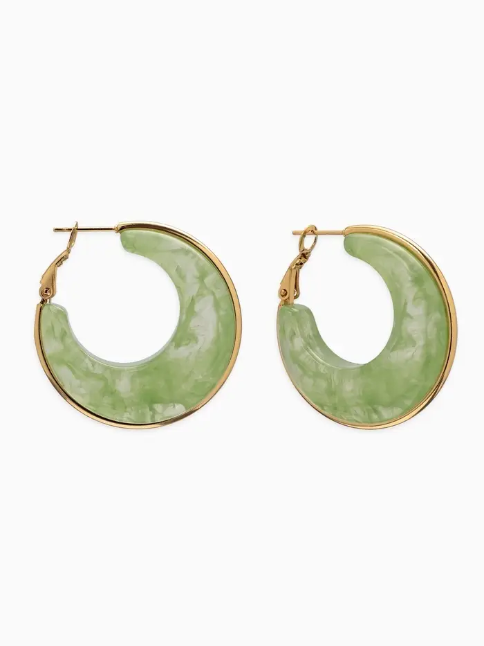 Серьги-кольца акрил "Тренд", цвет нефритовый в золоте