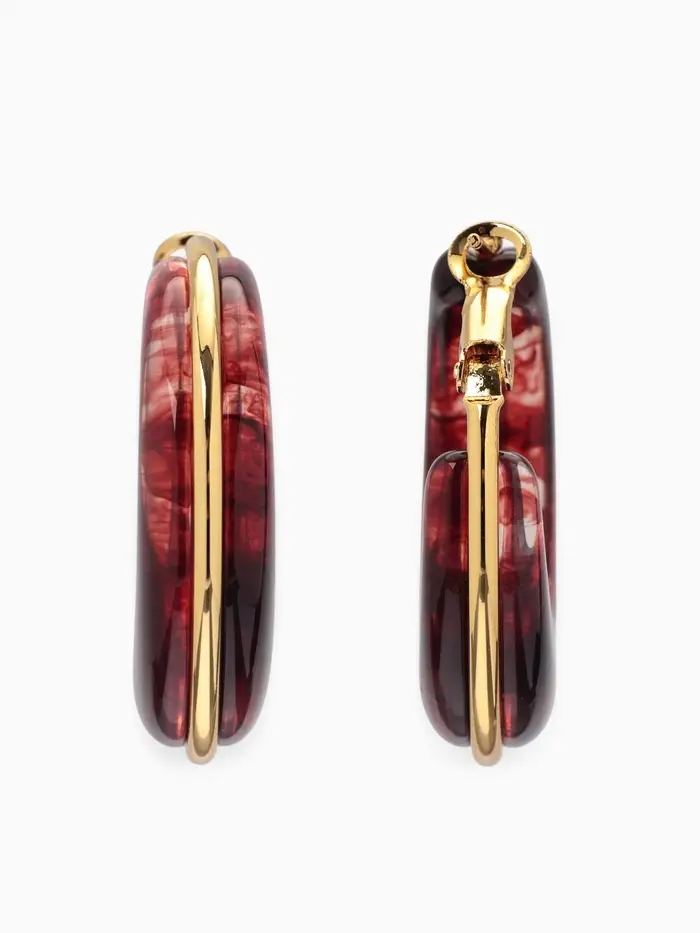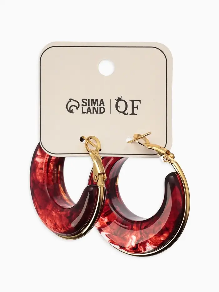 Серьги-кольца акрил "Тренд", цвет бордовый в золоте