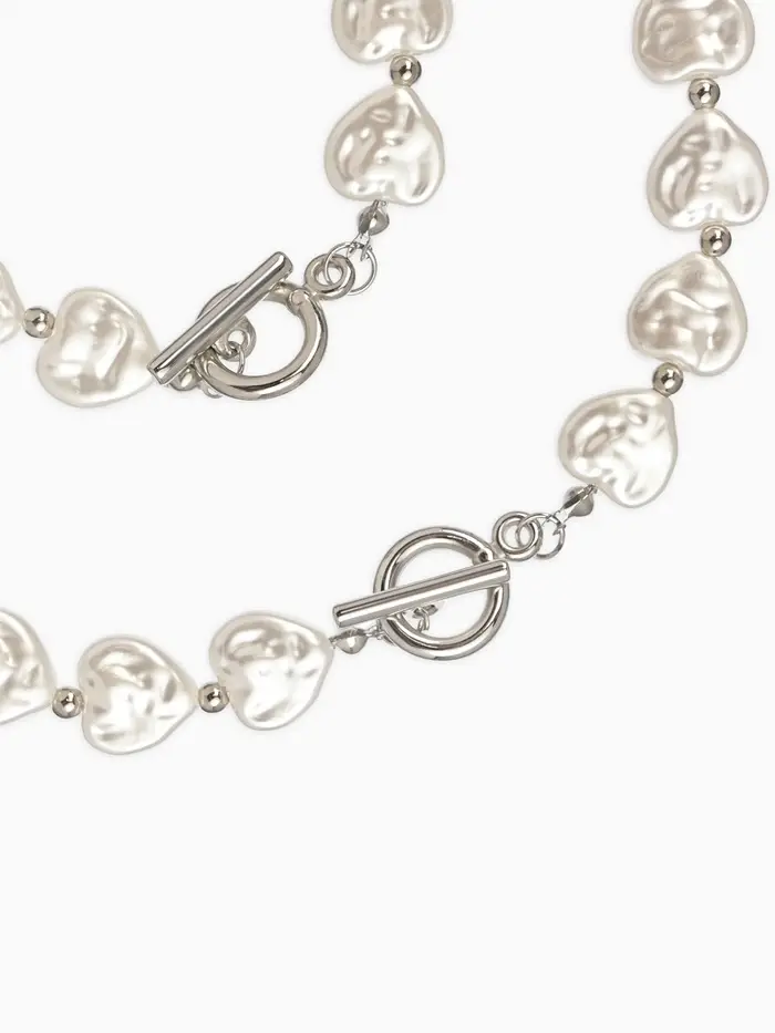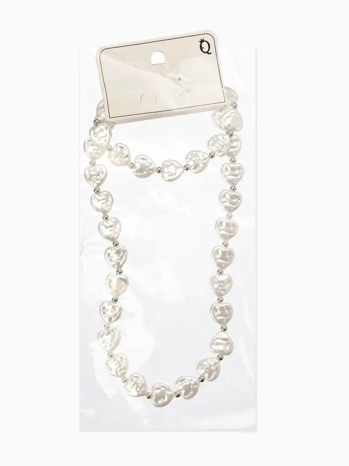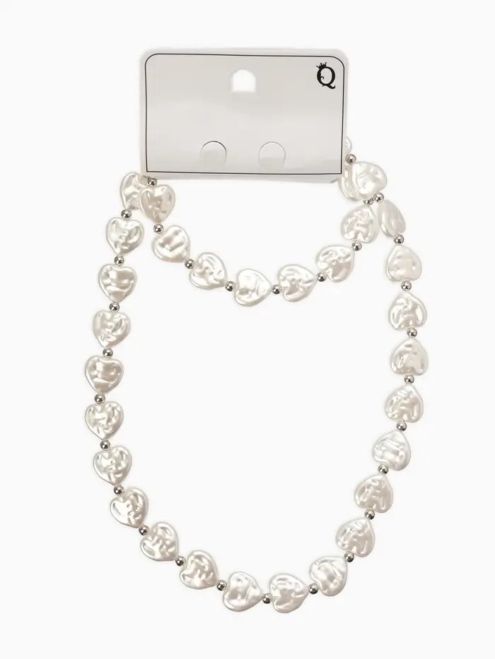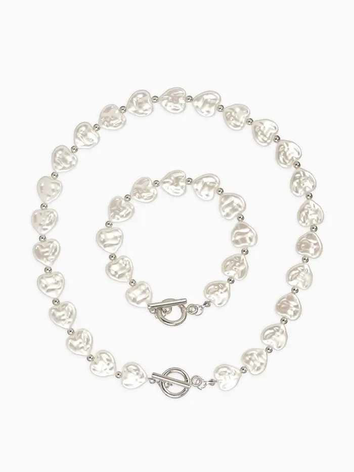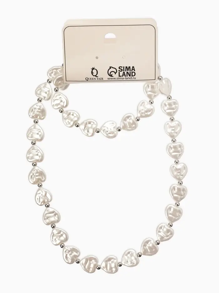 Набор 2 пред-та: бусы,браслет "Жемчуг барочный", сердечки, 40/18см, цвет белый в серебре