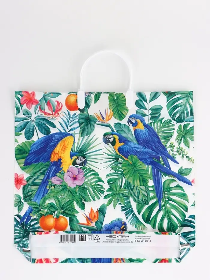 Пакет "Попугай, полиэтиленовый, пластиковая ручка 37х35 см 90 мкм