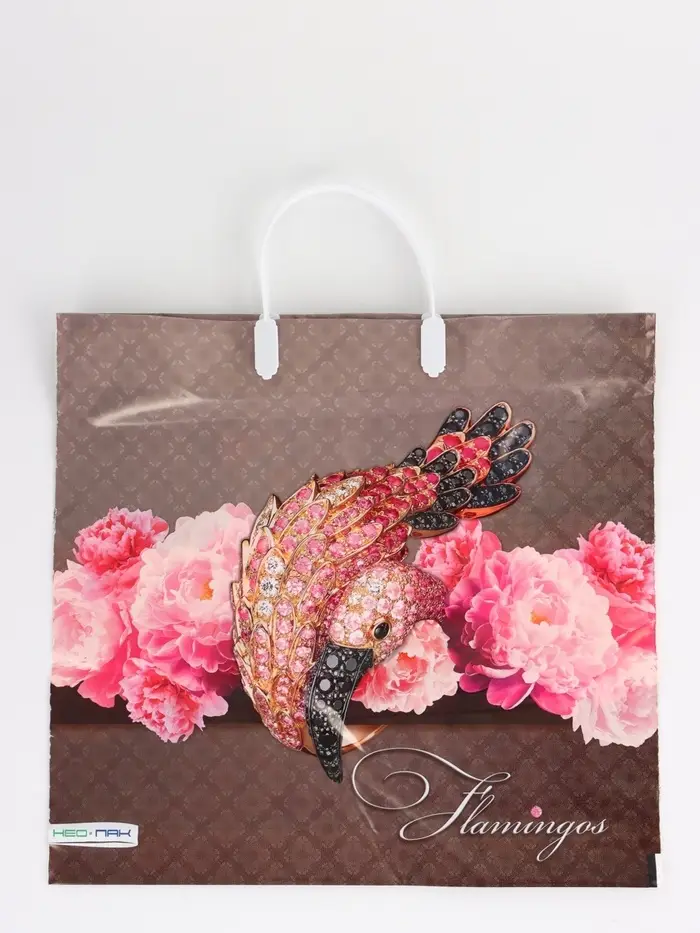 Пакет "Розовый фламинго, полиэтиленовый, пластиковая ручка 37х35 см 90 мкм 1095891