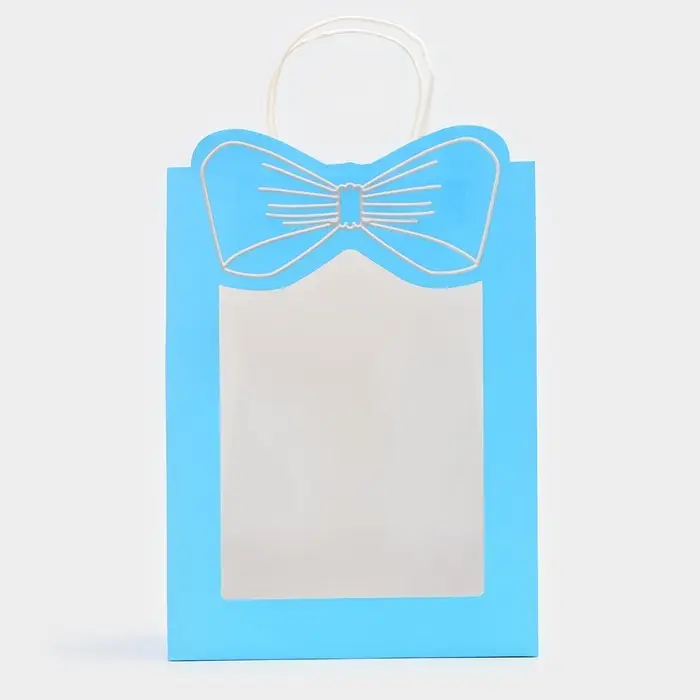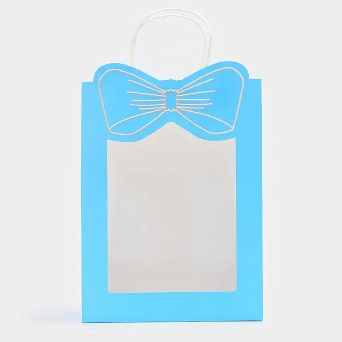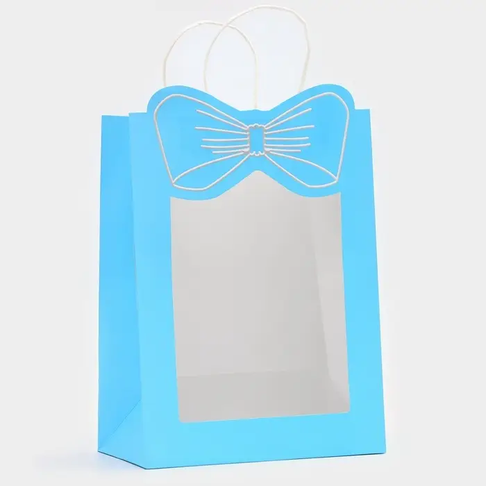 Пакет подарочный с окном «Бант», 26×35×15 см, голубой