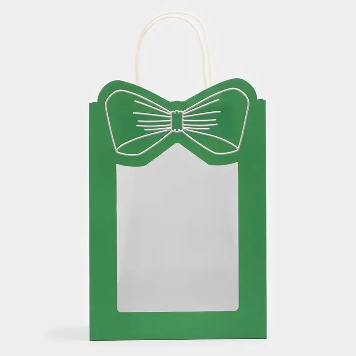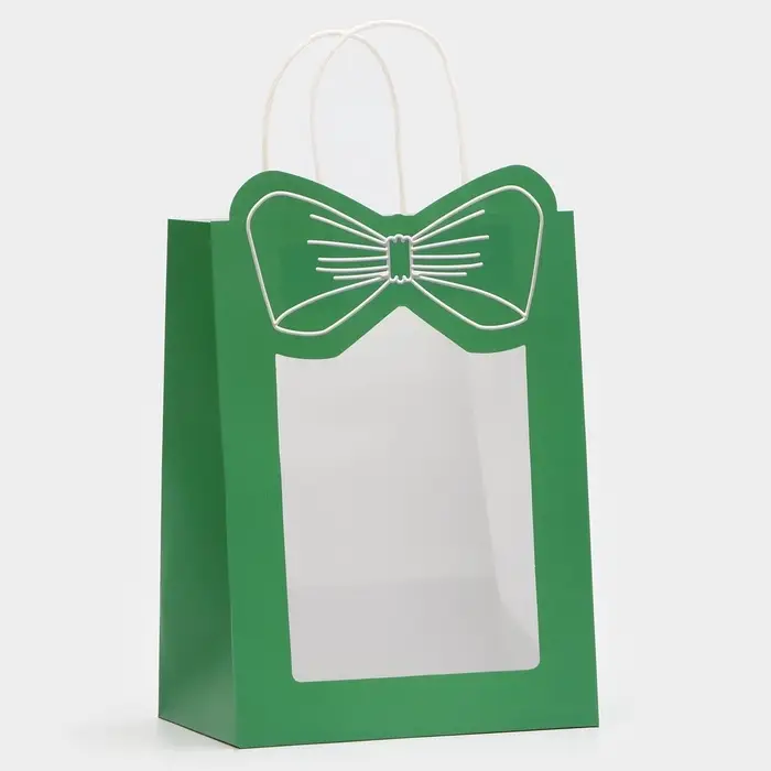 Пакет подарочный с окном «Бант», 19×26×13 см, зеленый