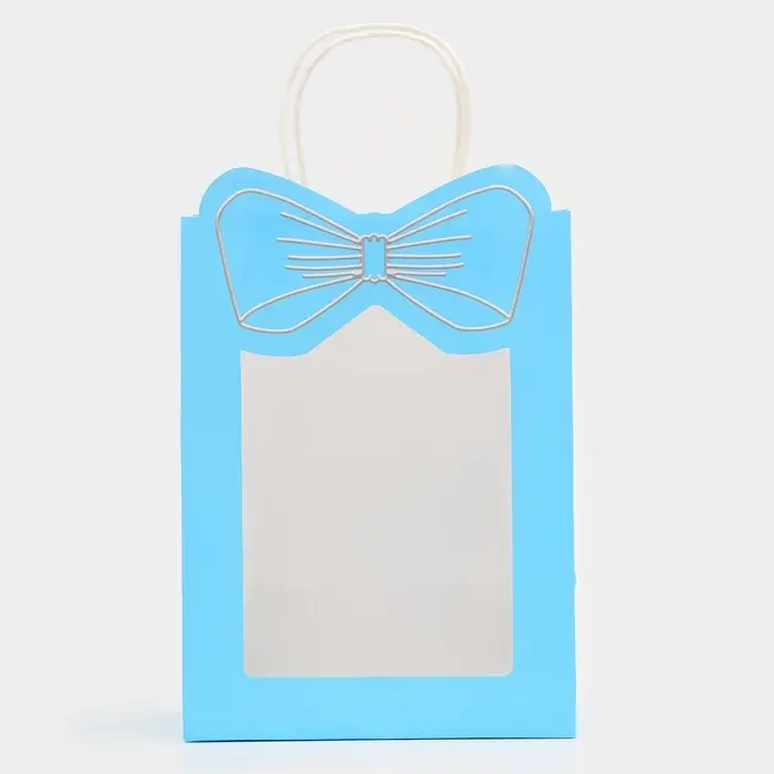 Пакет подарочный бумажный с окном «Бант», 19×26×13 см, голубой