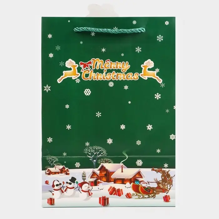 Пакет подарочный ламинированный с окном «Новый Год», тиснение, 18×25×13 см, зеленый