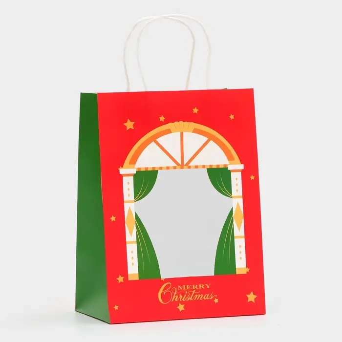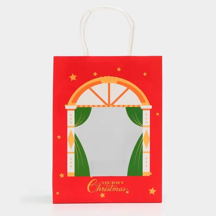 Пакет подарочный с окном «Театр» 19×26×13 см, красный