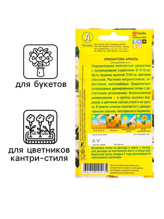 Семена цветов Хризантема "Ариэль", Мн, 0,1 г