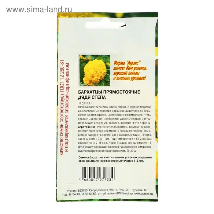 Семена цветов Бархатцы прямостоячие «Дядя Степа», О, 0.2 г