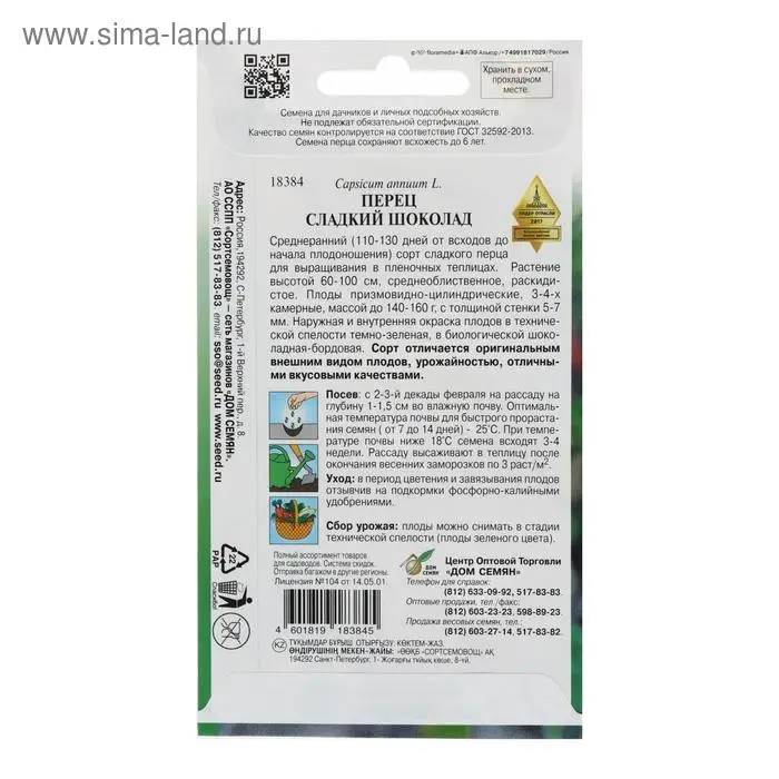Семена Перец "Сладкий шоколад", 15 шт