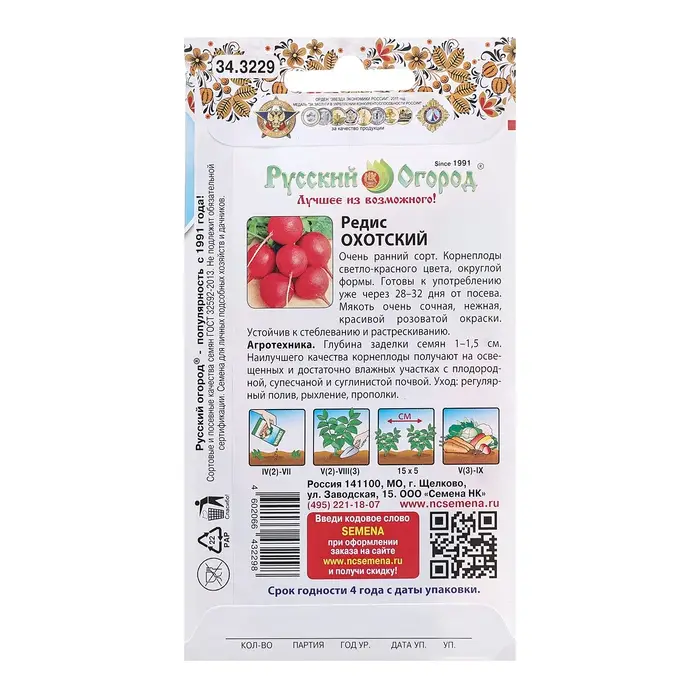 Семена Редис "Охотский", ц/п, 3 г