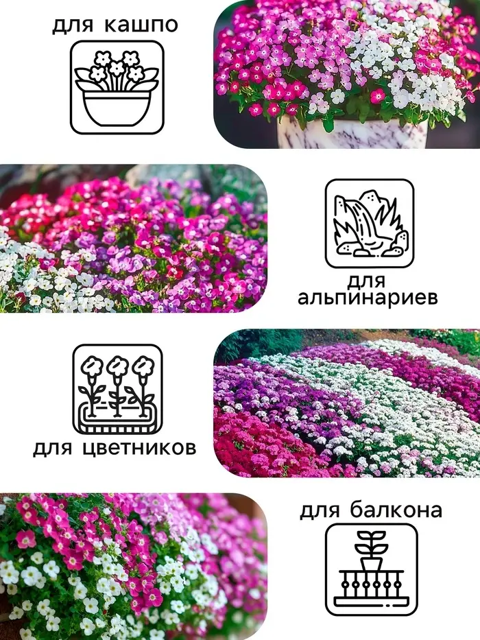 - Назначение: Для клумб, цветников, для балкона и веранды, подходит для букетов и срезки, также для альпийских горок