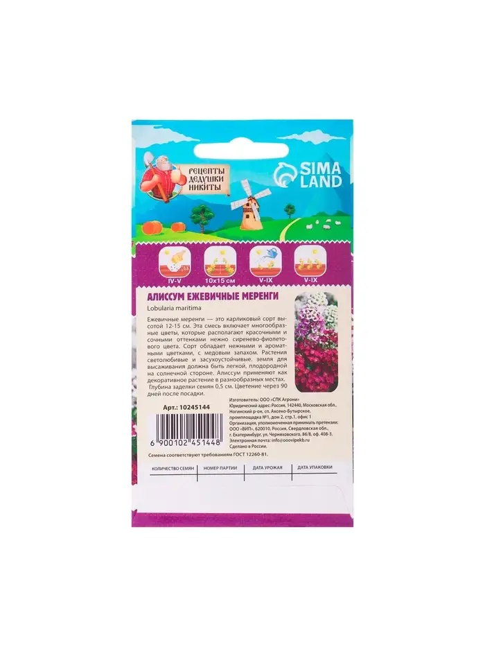 Семена цветов Алиссум "Магические цвета", смесь окрасок, О, 0,03 г