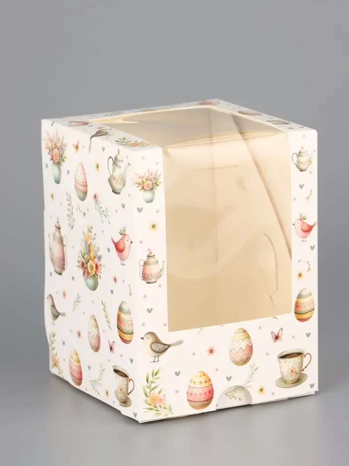 Коробка подарочная пасхальная с окном «Пасхальное чаепитие» 9.5×9.5×12.5 см