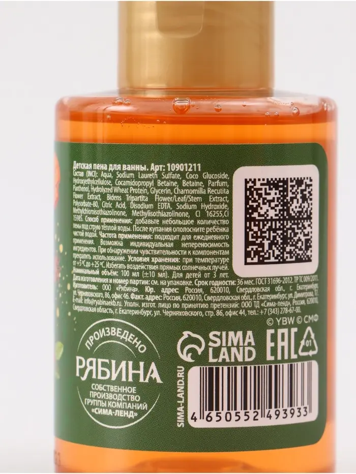 Детская пена для ванны, аромат апельсин, 100 мл, Чебурашка