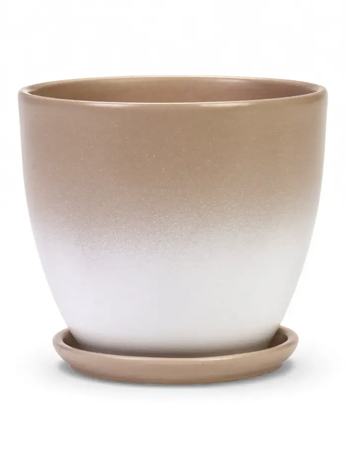 Горшок цветочный с поддоном 1,4 л, d15/h13 см капучино керамика, "Туман" (М)