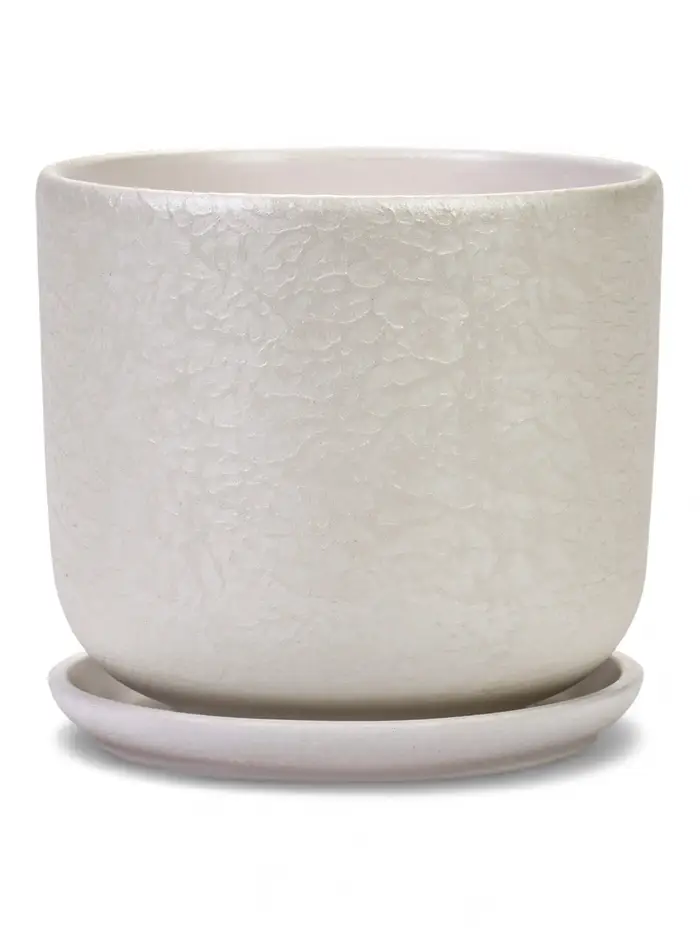 Горшок цветочный с поддоном 1,6 л, d15/h13 см белый керамика, "Перл" (М)