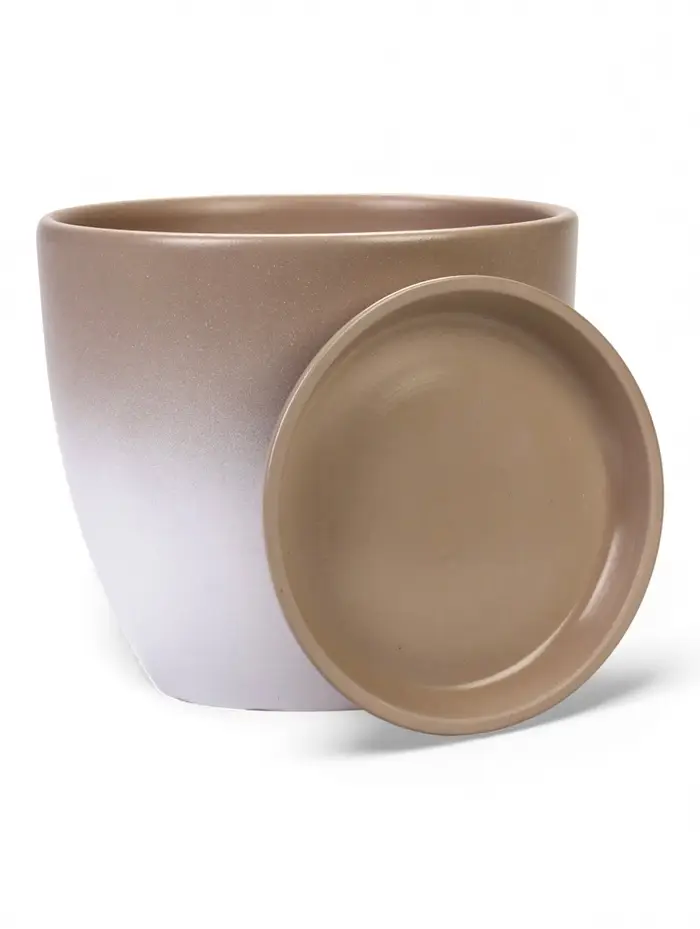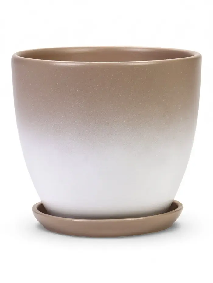 Горшок цветочный с поддоном 5 л, d122/h19,5 см капучино керамика, "Туман" (М)