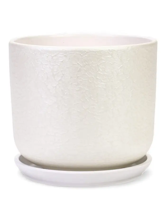 Горшок цветочный с поддоном 5,4 л, d22/h19 см белый керамика, "Перл" (М)