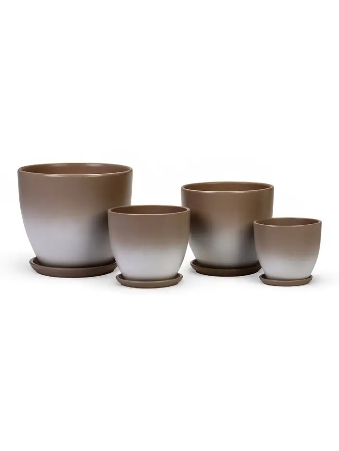 Набор горшков цветочный поддоном 4 шт 0,6 / 1,4 / 2,5 / 5 л керамика капучино Туман