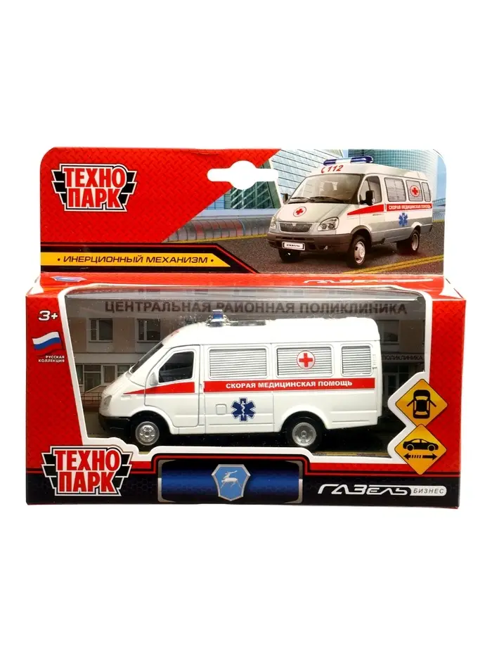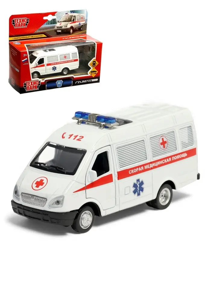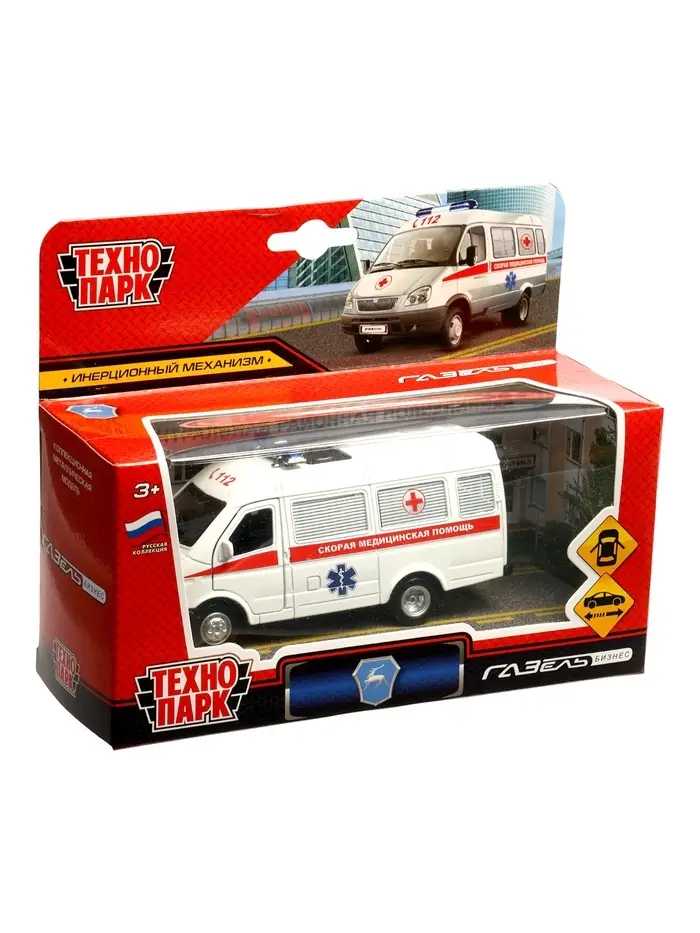 Машина металл. «ГАЗ-3221 «ГАЗель» Скорая помощь» 12,2 см, инерц, в кор.