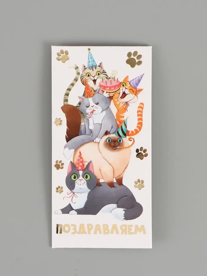 Конверт для денег «Поздравляю», коты, тиснение, 16,5 х 8 см