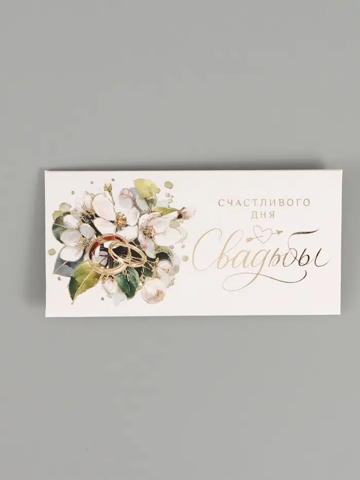 Конверт для денег «Счастливый день свадьбы», тиснение, 16,5 х 8 см