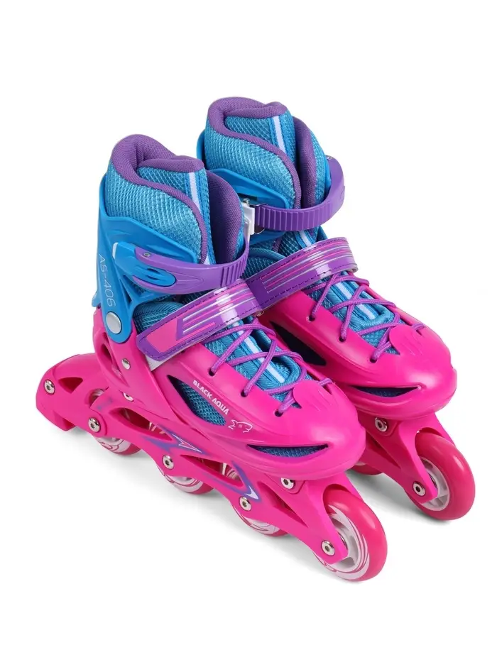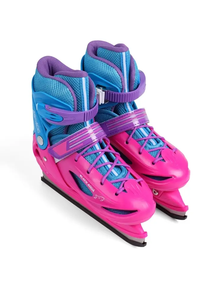 Раздвижные коньки BlackAqua – прогулочные коньки для детей, которые делают свои первые шаги на льду или уже уверенно чувствуют себя на катке. Коньки оснащенны дополнительной роликовой платформой, лёгкие, устойчивые и удобные, они обеспечат комфорт как на льду, так и на асфальте.