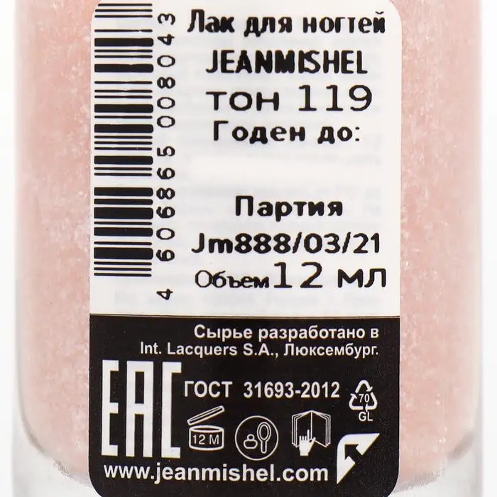 Лак для ногтей Jeanmishel, тон 119, светло-розовый жемчужный, 12 мл