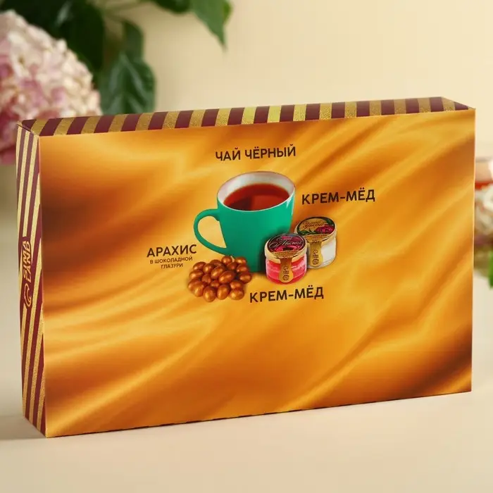 Набор «23 Февраля»: крем-мед, орехи в шоколадной глазури, чай, ложка