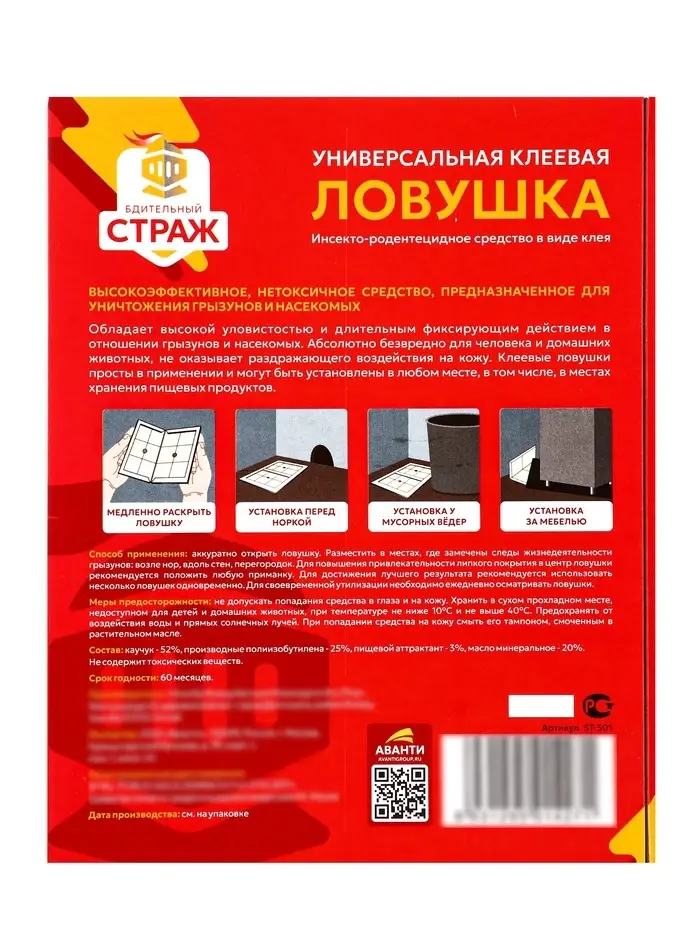 Клеевая ловушка от насекомых и грызунов книжка трансформер "БДИТЕЛЬНЫЙ СТРАЖ" 1 шт