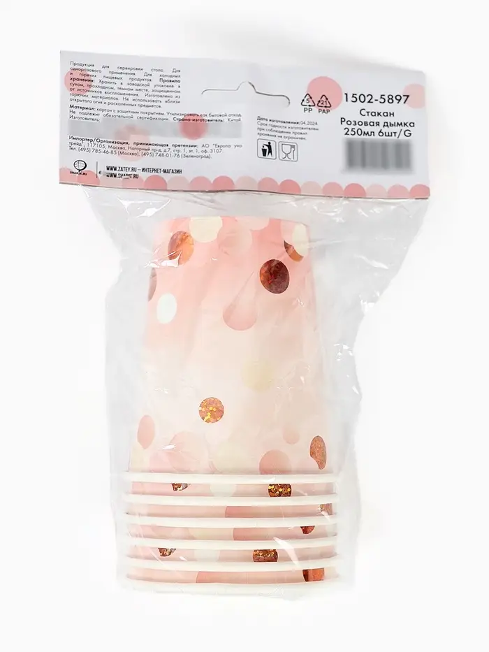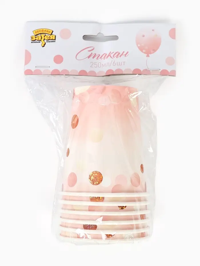 Стакан бумажный одноразовый «Розовая дымка», 250 мл, 6 шт