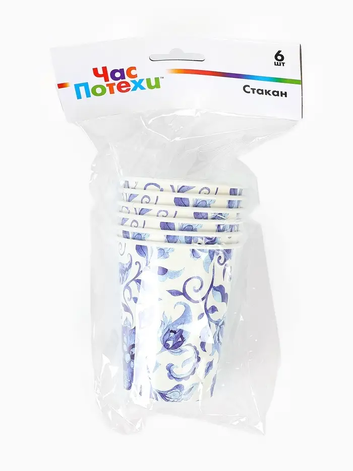 Стакан бумажный одноразовый «Синие Узоры», 250 мл 6 шт