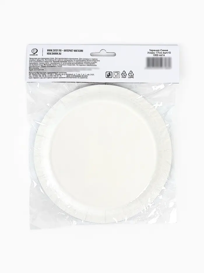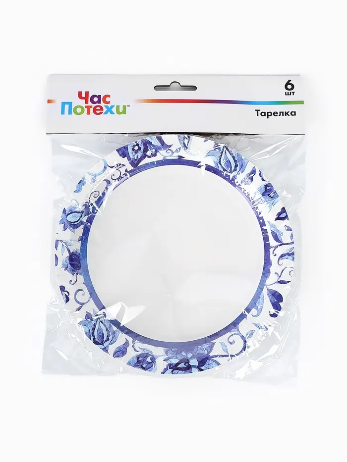 Тарелка одноразовая бумажная «Синие Узоры», 17 см, 6 шт
