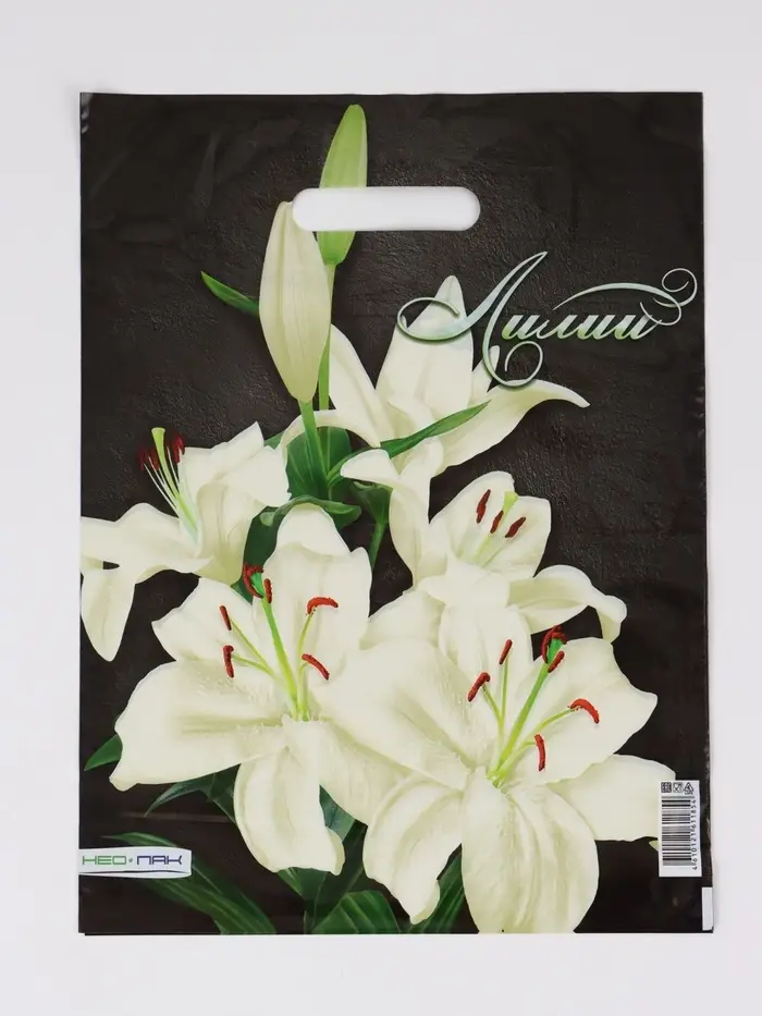 Пакет "Лилии, полиэтиленовый с вырубной ручкой 30х40 см, 60 мкм