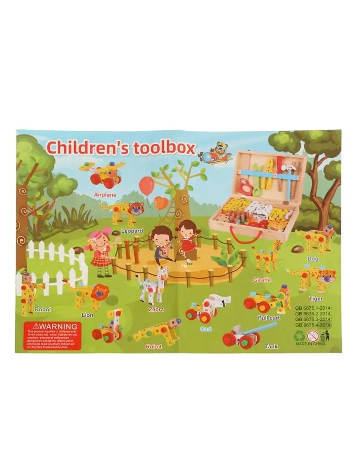 Набор инструментов детский "Собери животных", деревянный конструктор
