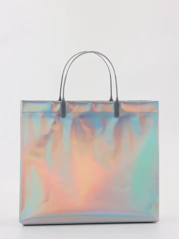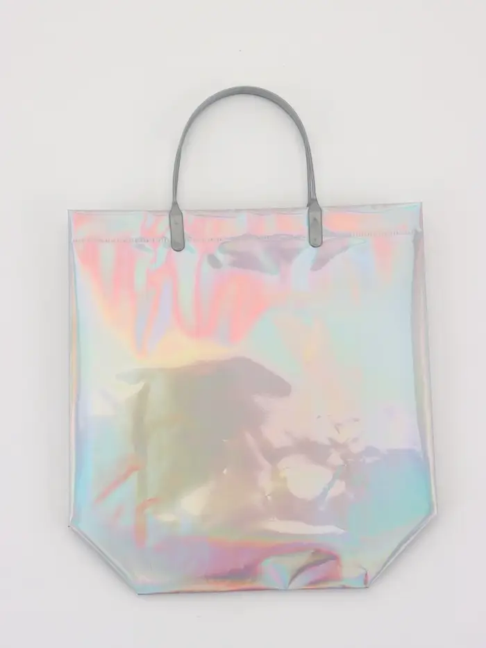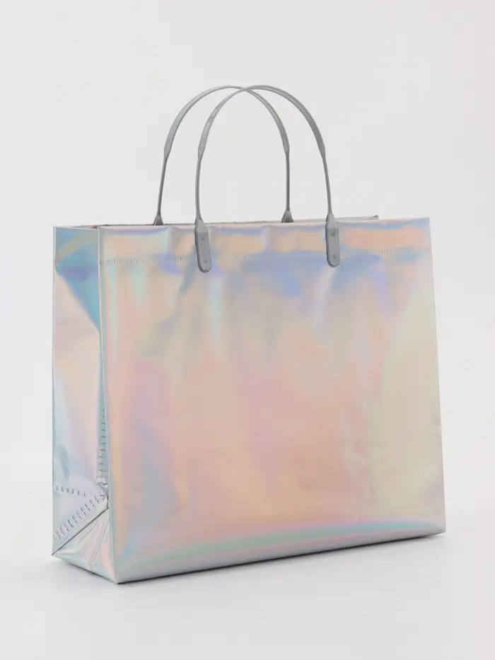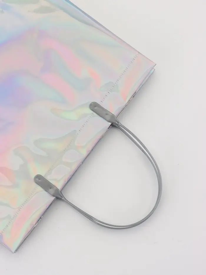 Пакет подарочный ПВХ, голография, серебро, пластиковая ручка, 26×22.5×10 см