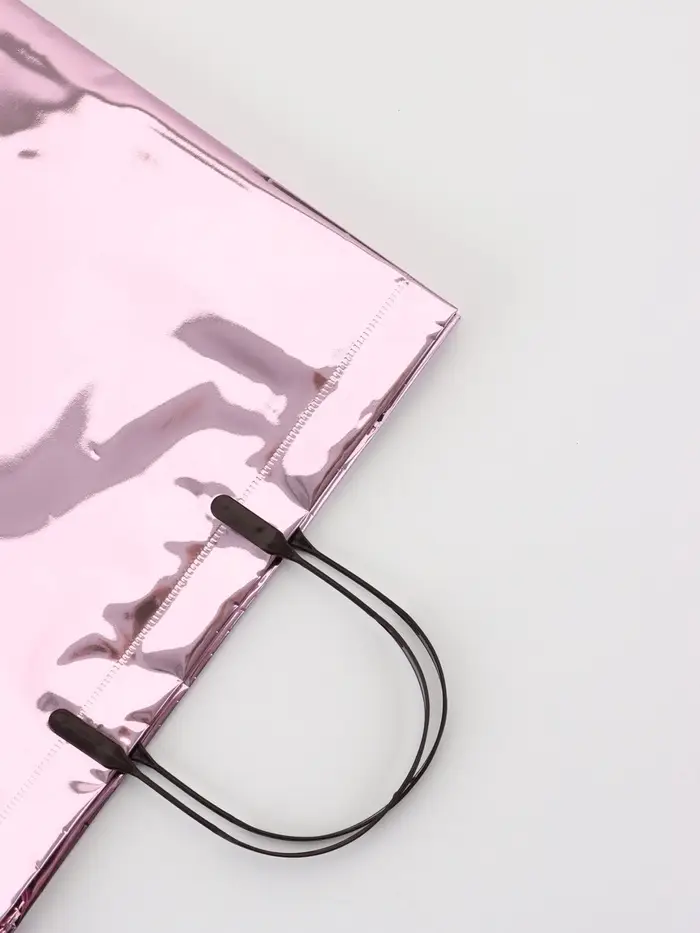 Пакет подарочный ПВХ, голография, розовый, пластиковая ручка, 32×28×11 см