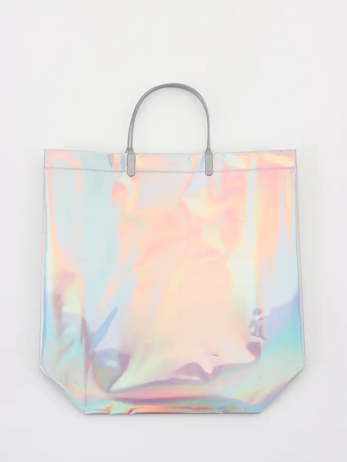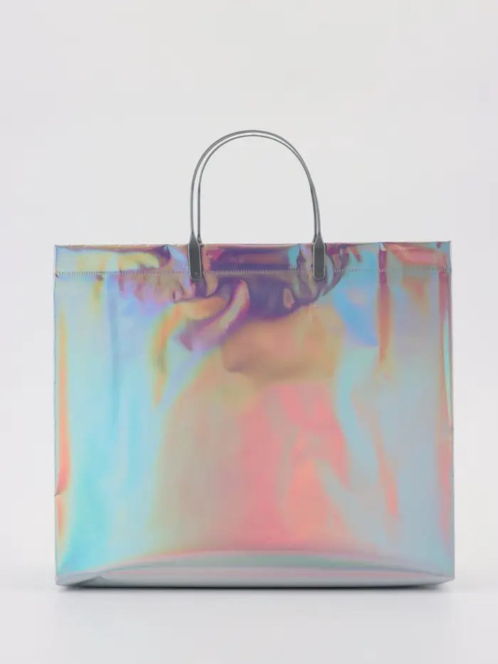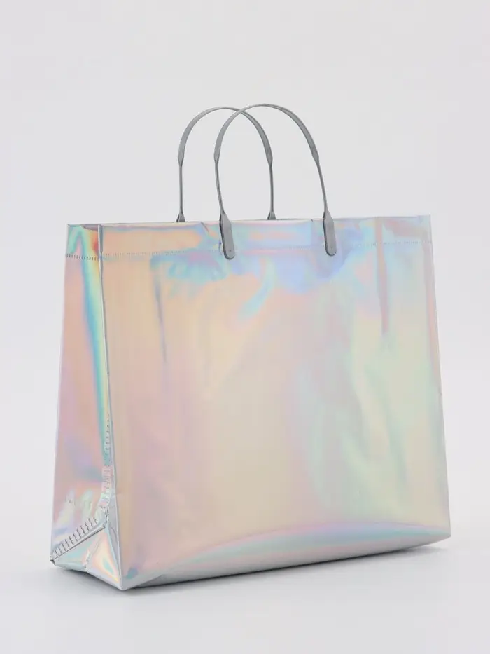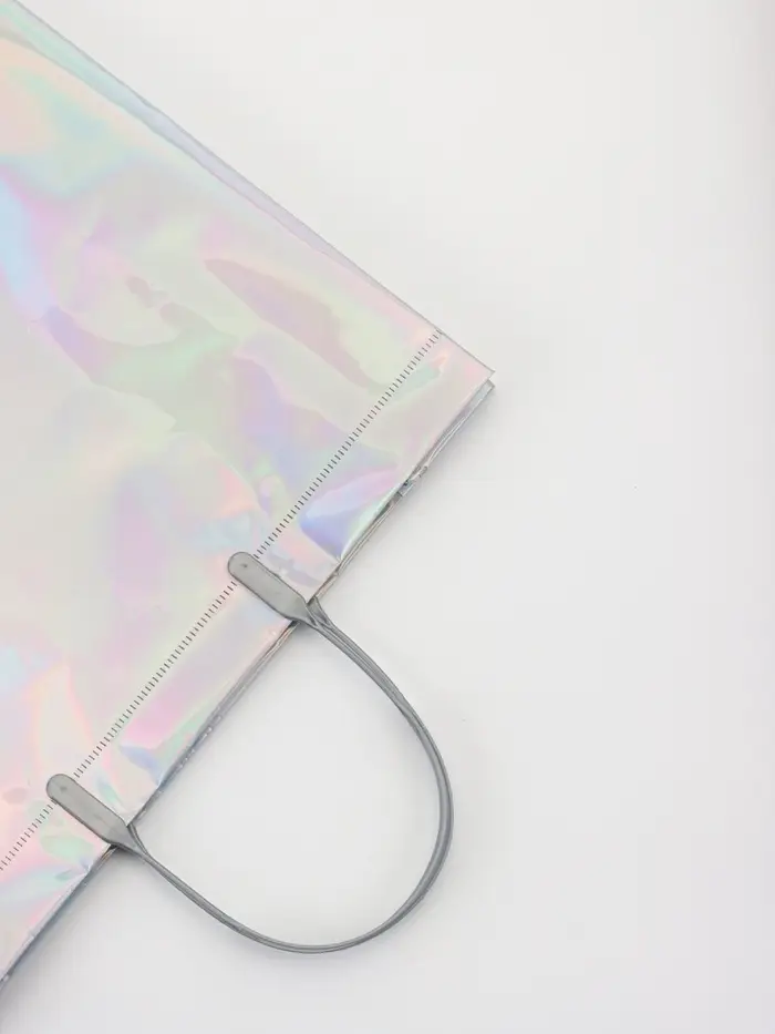 Пакет подарочный ПВХ, голография, серебро, пластикова ручка, 32×28×11 см