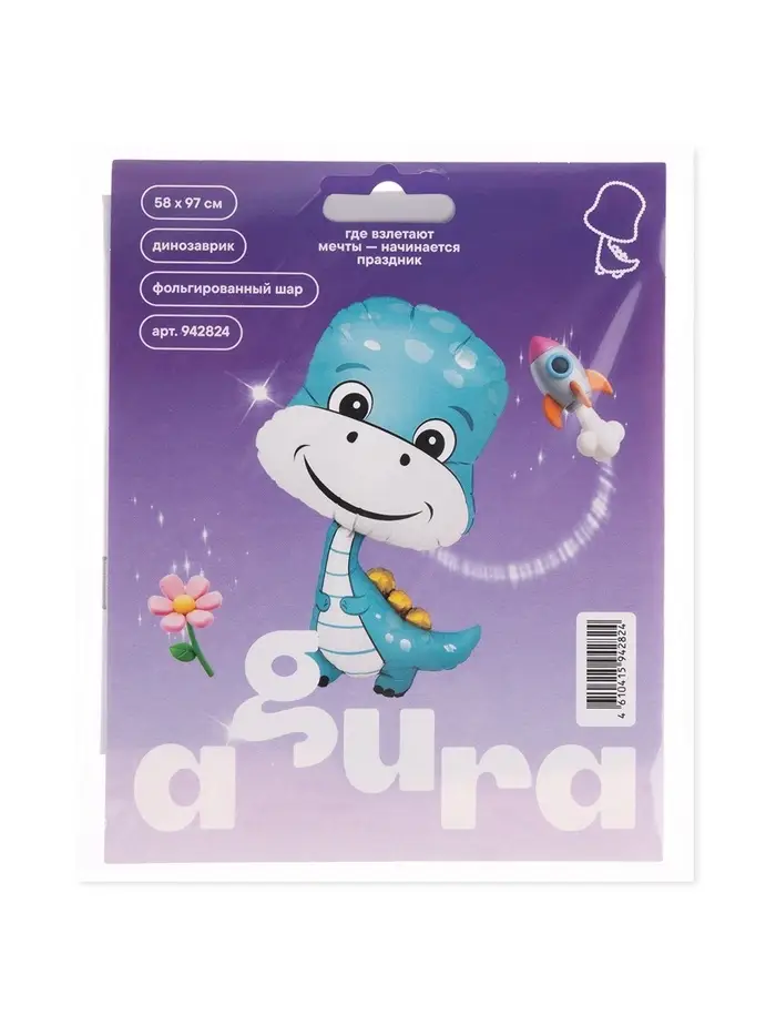 Воздушный шар фольгированный 38" «Динозаврик мальчик»