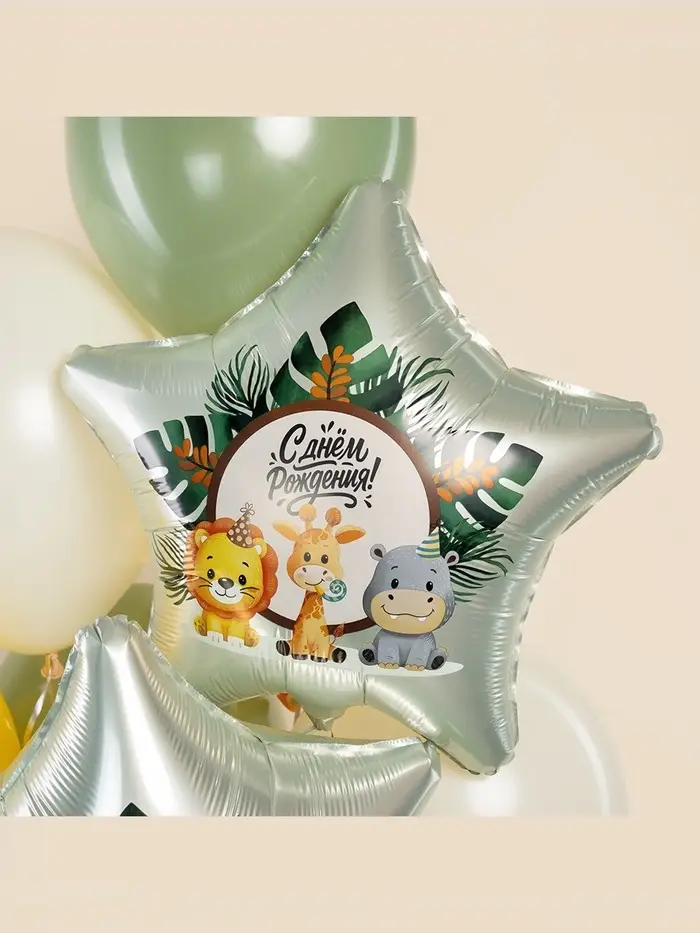 Воздушный шар фольгированный 19" «Весёлые зверята. Звезда», 5 шт.