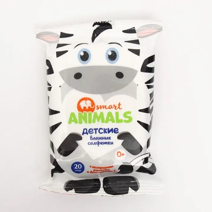 Салфетки влажные Smart animals №20 детские с ромашкой и витамином Е mix