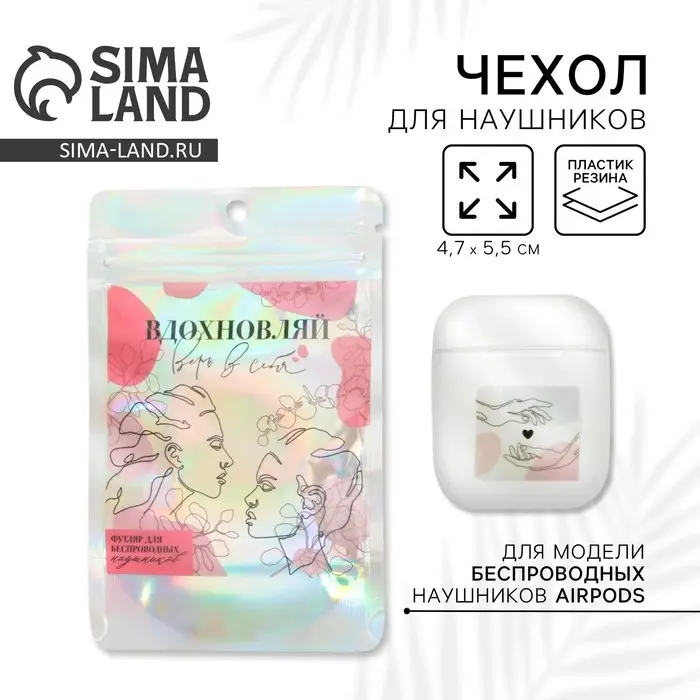 Компактный силиконовый футляр сохранит любимые наушники в сохранности. Чехол подходит для футляра от наушников AirPods. Размер чехла: 4,5 х 6,5 см.