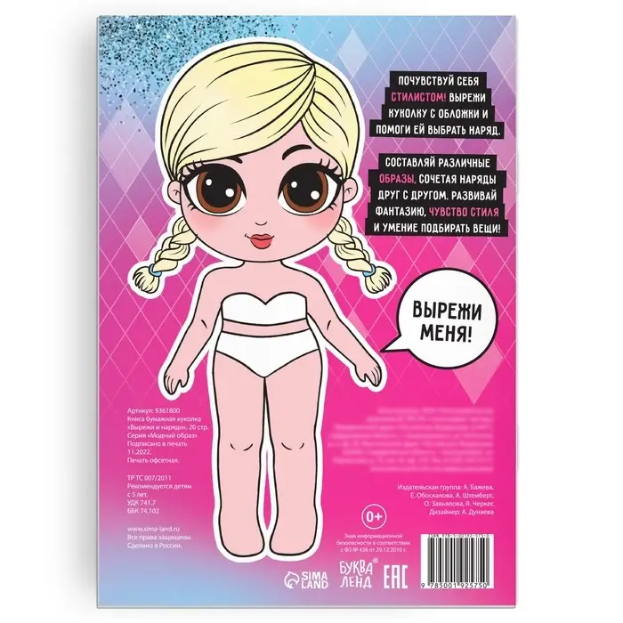 С этой книгой малышка почувствует себя настоящим стилистом! Девочке предстоит вырезать куколку с обложки и выбрать ей модный наряд.