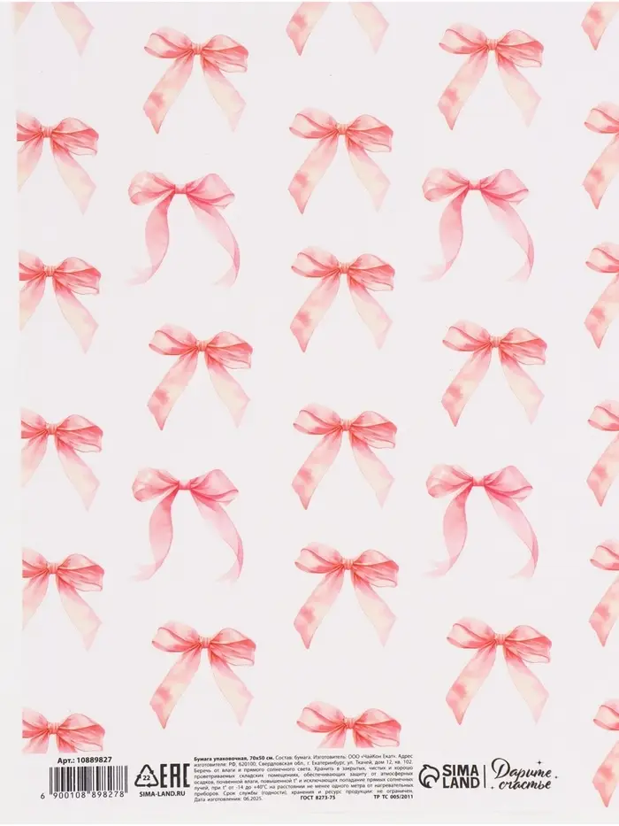 Бумага упаковочная глянцевая «Бантики», 50 × 70 см