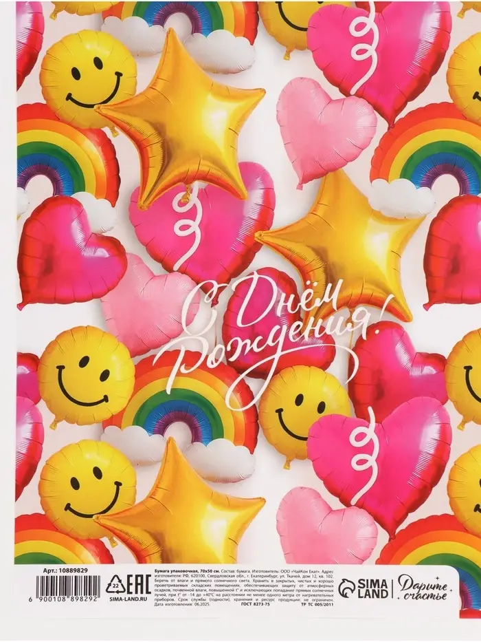 Бумага упаковочная глянцевая «Праздник», 50 × 70 см